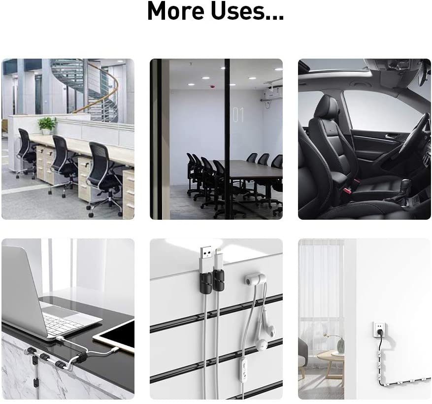 WIDE APPLICABILITY -- Compatible with round and flat cables less than 7mm in diameter. Suitable for all kinds of cables, such as earphone cable, network cable, mouse cable, audio cable and some power cables, etc. The back rubber is suitable for many types of materials, such as wood, glass, plastic, leather, tiles, bricks, and wallpaper etc.