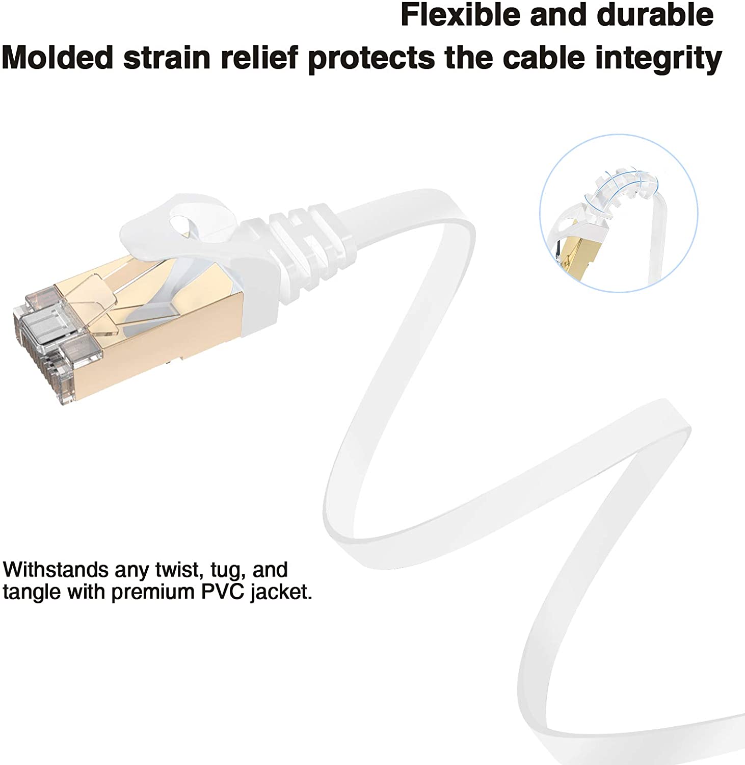 Size:50ft | Color:whiteVANDESAIL CAT 7 Ethernet cable 50 ft flat Shielded with gold plated rj45 connector