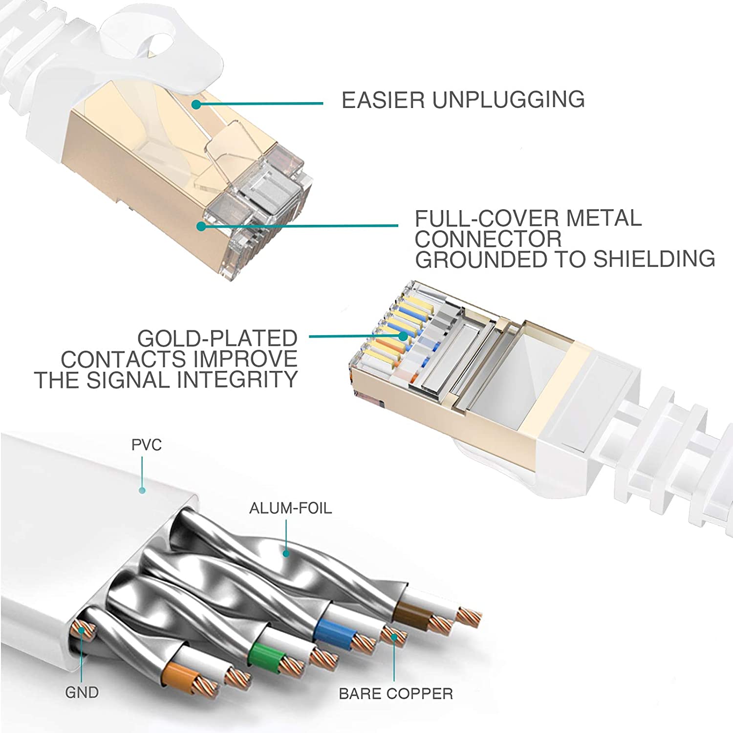 - ★UNIQUE DESIGN - Better than regular Cat 7 Ethernet cable 50 ft in the market, our Ethernet cables are made of PVC housing material attaching unique full cover rj45 connectors on both ends which protects the copper cable core from damage with strong wear resistant.