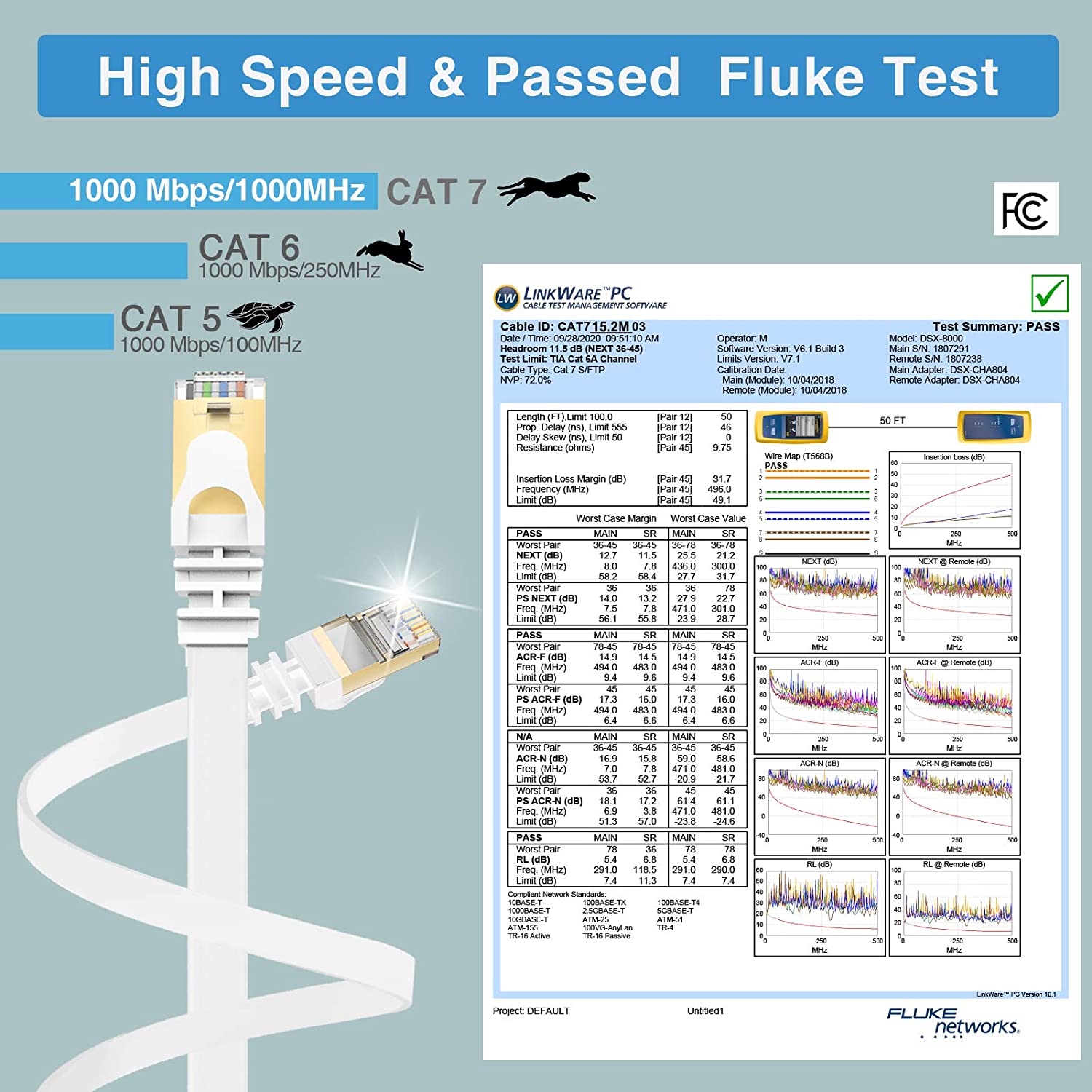 ★ ALUMINUM FOIL SHIELDED - Flat Ethernet cable are made of 4 shielded twisted pair (STP) wrapped by aluminum foil. Less signal loss and provide better protection from crosstalk. The anti-interference ability is stronger than Cat6.