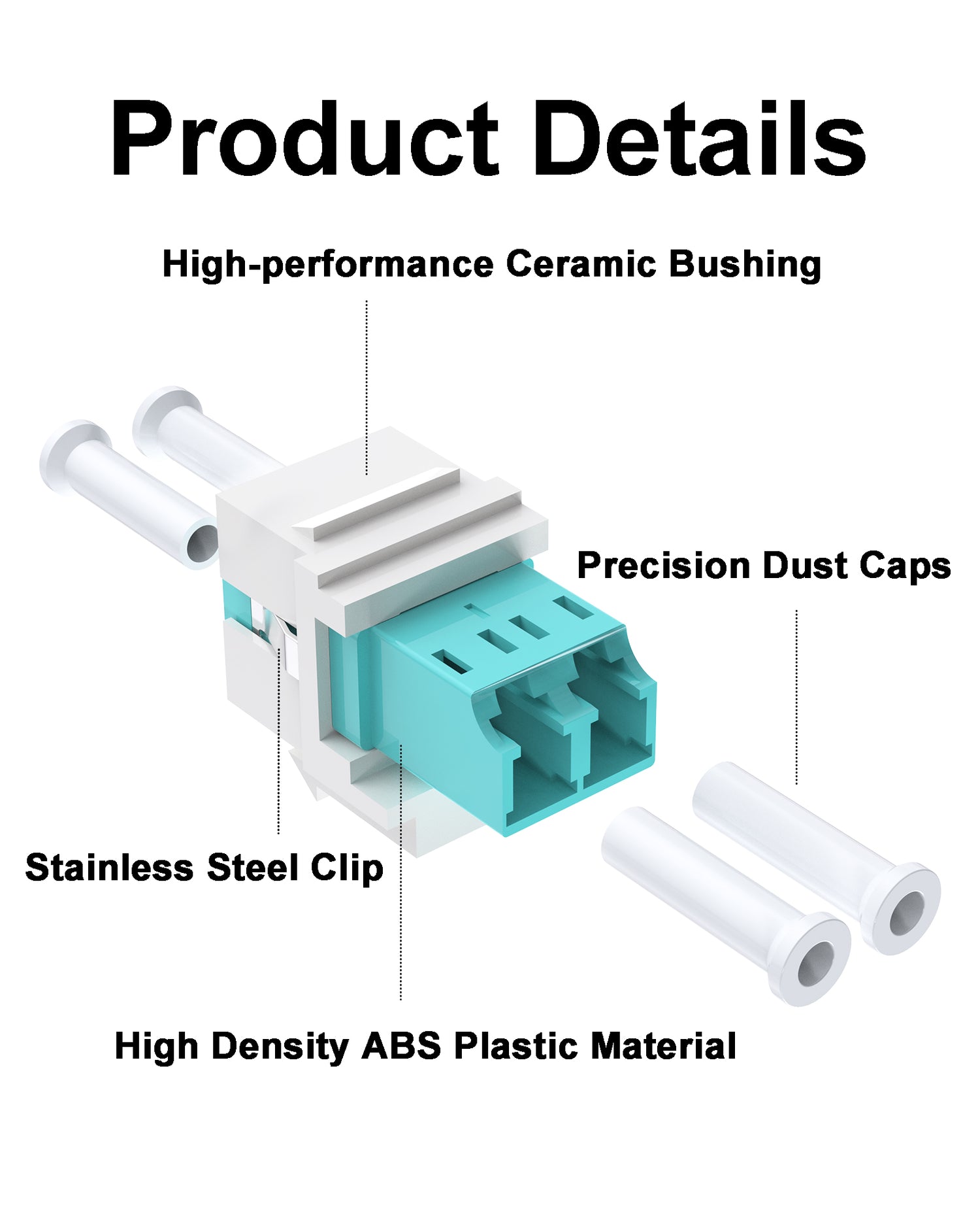 LC Fiber Optic Keystone Coupler Jack, UPC, Duplex OM3/OM4 Compatible, LC to LC Multimode Fiber Coupler, for Fiber Wall Plate, Surface Mount Boxes