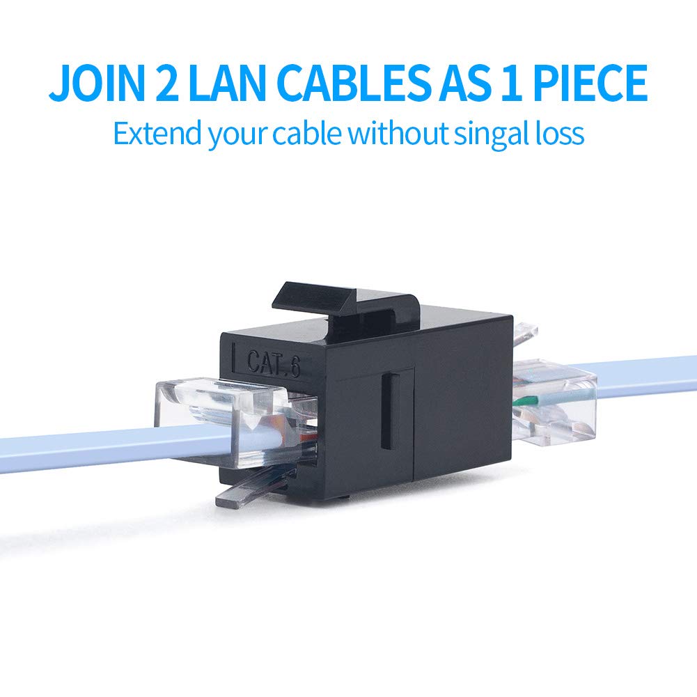 - ★ DOUBLE FEMALE RJ45 PLUG: This inline cat6 coupler connects two separate category 5e/6 cables (depending on type you bought) through a RJ45 keystone coupler. Rj45 coupler female to female can be used with Cat.6, Cat5, CAT5e Ethernet cables.