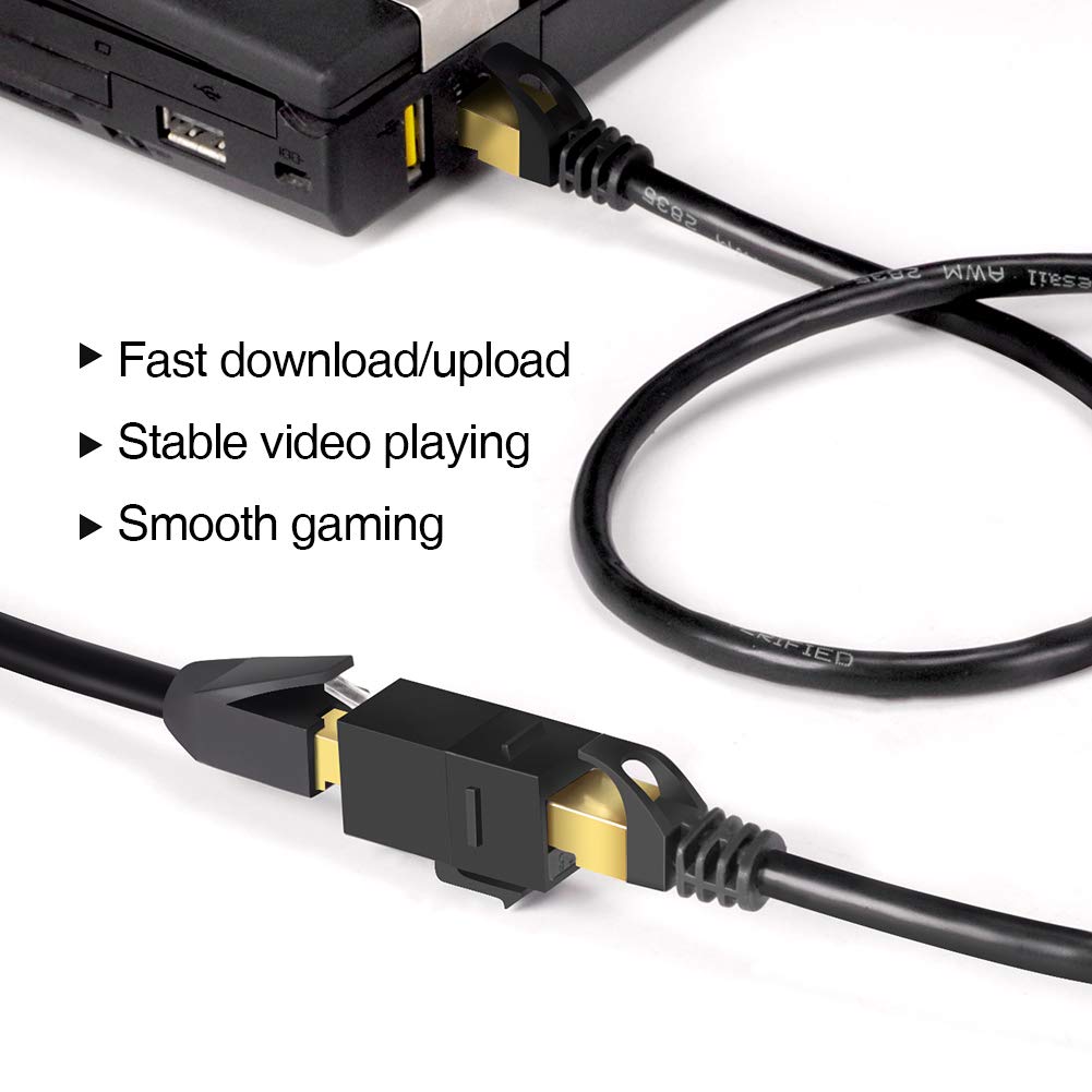 - ★ HIGH QUALITY MATIRIAL & TECHNOLOGY - Gold plated contacts of ethernet female to female coupler which prevent the oxidization and easy snap-in retaining clip ensure a secure and corrosion free connection.