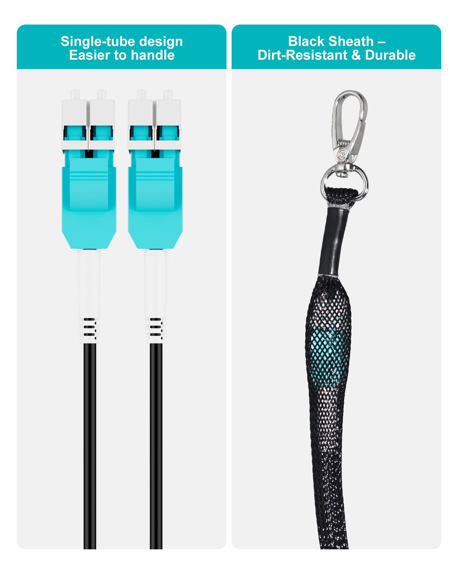 This om3 fiber lc to lc features a uniboot LC/UPC to LC/UPC duplex design, combining two fibers into one compact structure. This saves space in racks and distribution frames while supporting quick polarity reversal. The OM3 50/125μm multimode fiber enables high-speed 10Gbps transmission up to 300 meters.