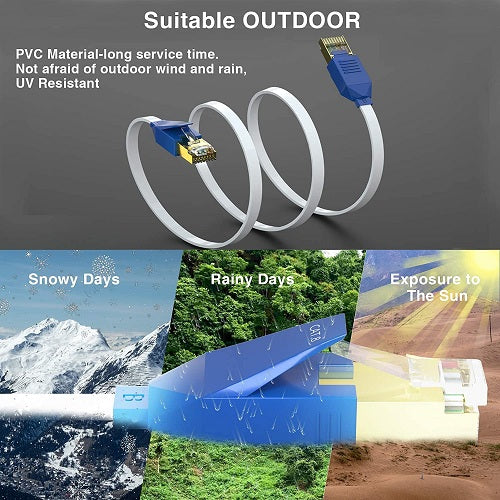 ◆ Weatherproof & UV Resistant -- Shielded with high quality Thicker UV-resistant jacket, the outdoor rated CAT8 outdoor ethernet cable is anti-aging. It can withstand direct sunlight and extreme cold at -20℃ & hot at 60℃ still working efficiently.