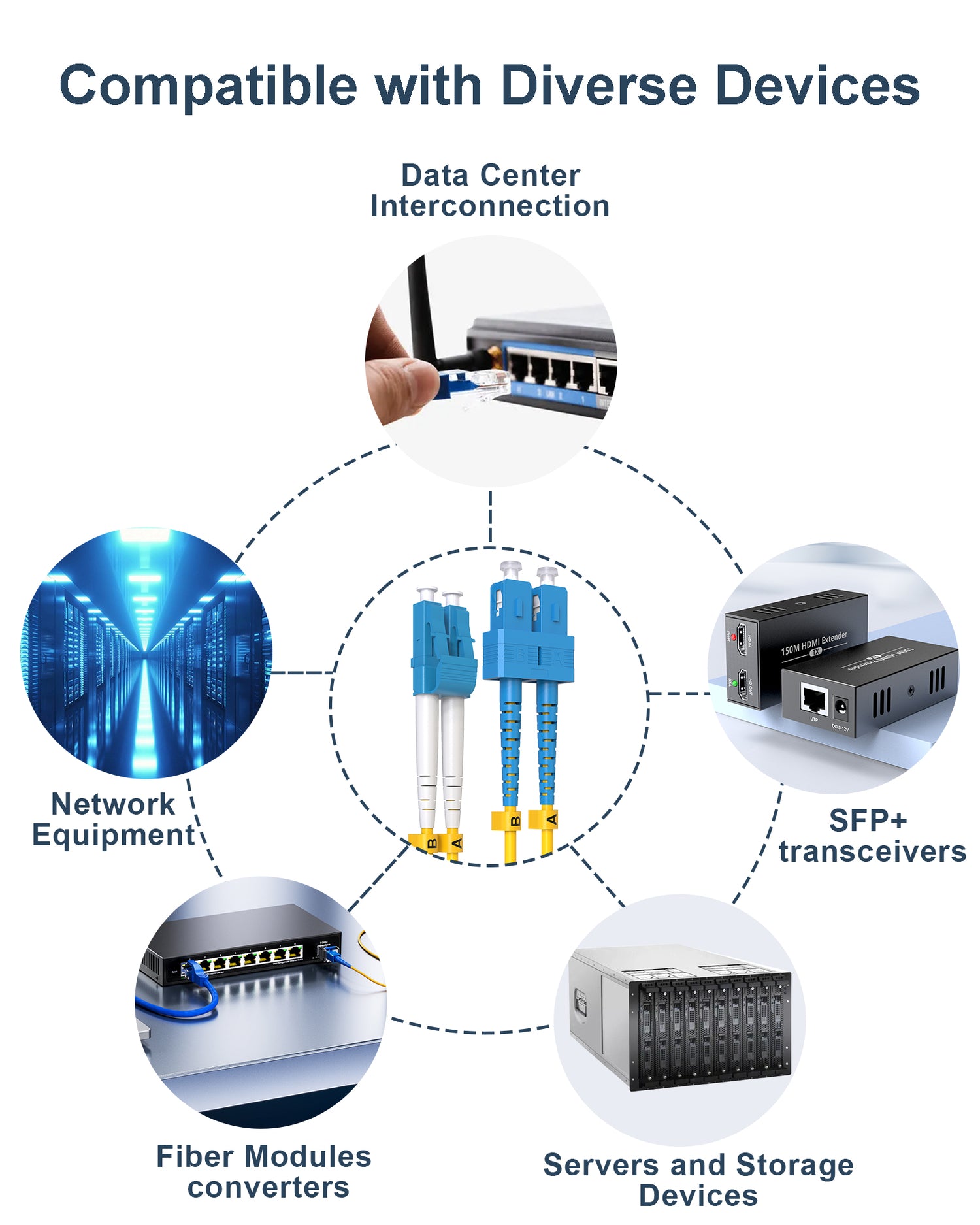 ✔[Wide Application] This OS2 SC-LC Single Mode Duplex Fiber Patch Cord is ideal for connecting 10G SR, 40G BIDI SR, QSFP+, SFP+ transceivers etc, suitable for 1G/10G/40G/100G/400G Ethernet connections, saves more space for your high density cabling in data centers, cloud storage networks, server farms, computer room wiring, community network construction and any places fiber optic cables are necessary.
