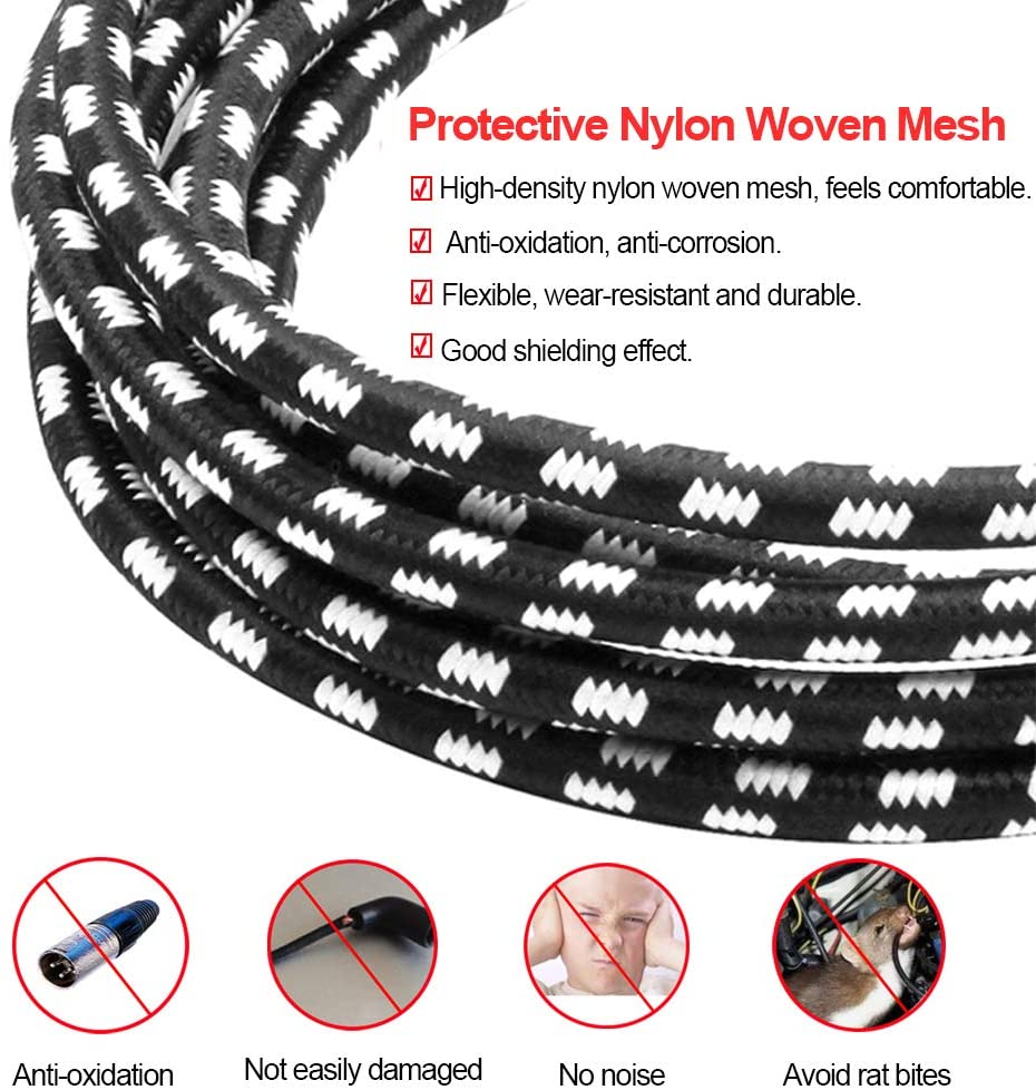 - 【Flexible Nylon Braided】Microphone cable built with nylon braided housing enhances flexibility and durability. Bend test up to 10,000+ times without reducing microphone cord flexibility and ensure its optimal performance. Mic cable with tangle-free braiding material is wear-resistant and last longer.